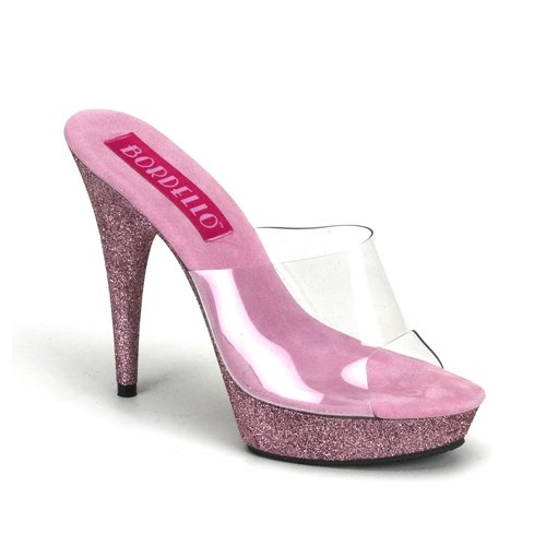 Womens Dancer Shoes 5 Inch High Heel Platform Sexy Slide Sandal Pink Glitter Shoe Feature