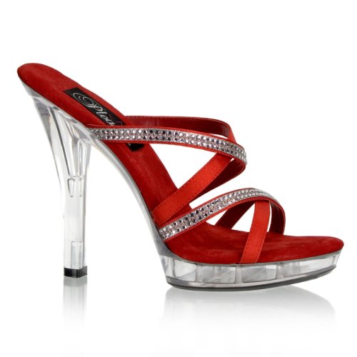 5 Inch Sexy Dance Shoes High Heel Mini Platform Slides With Rhinestone Accents Red / Clear Overview