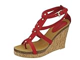 Cheap "Reneeze BIRD-1 Women's High-Heels Platforms Wedge Ankle-Strap Sandals - Red" On Sale
