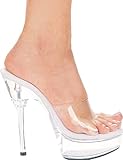 6 inch Clear Mule Women's Size Shoe With Rhinestone Silver Metallic Heel.